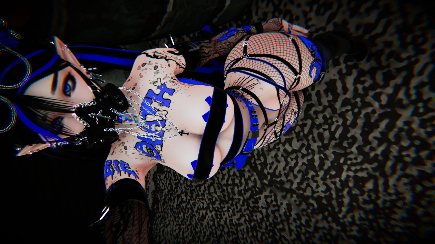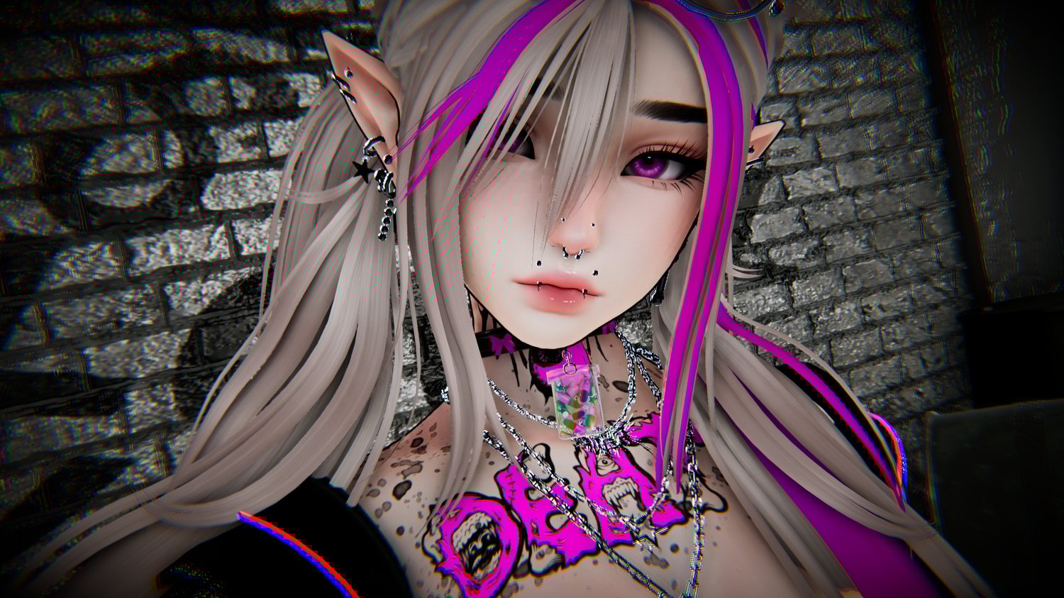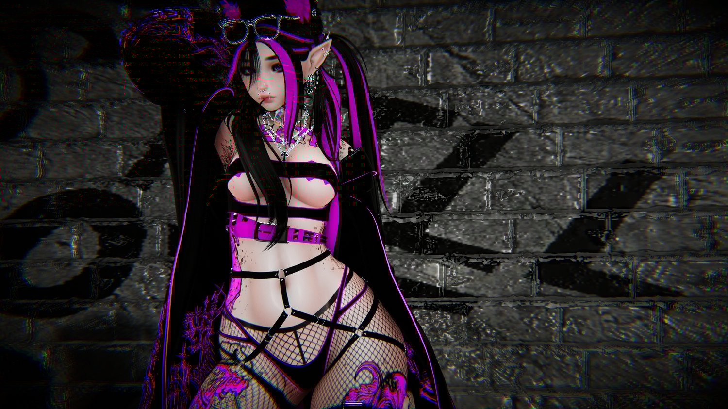 Glasses - Glasses Up - Face Piercings - Gas Mask - Choker - Belt - Hip Harness- Top Earrings - Lower Earrings - Necklaces - Leg Fishnets - Fishnet Bands