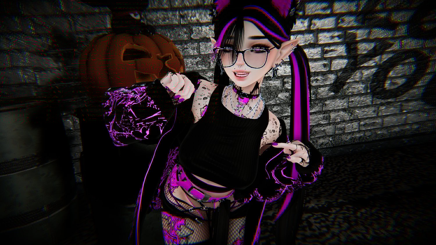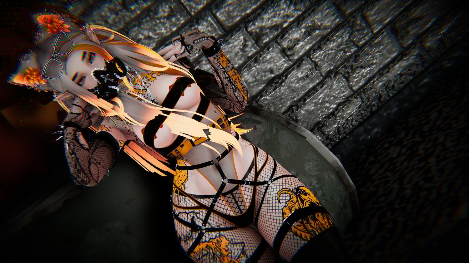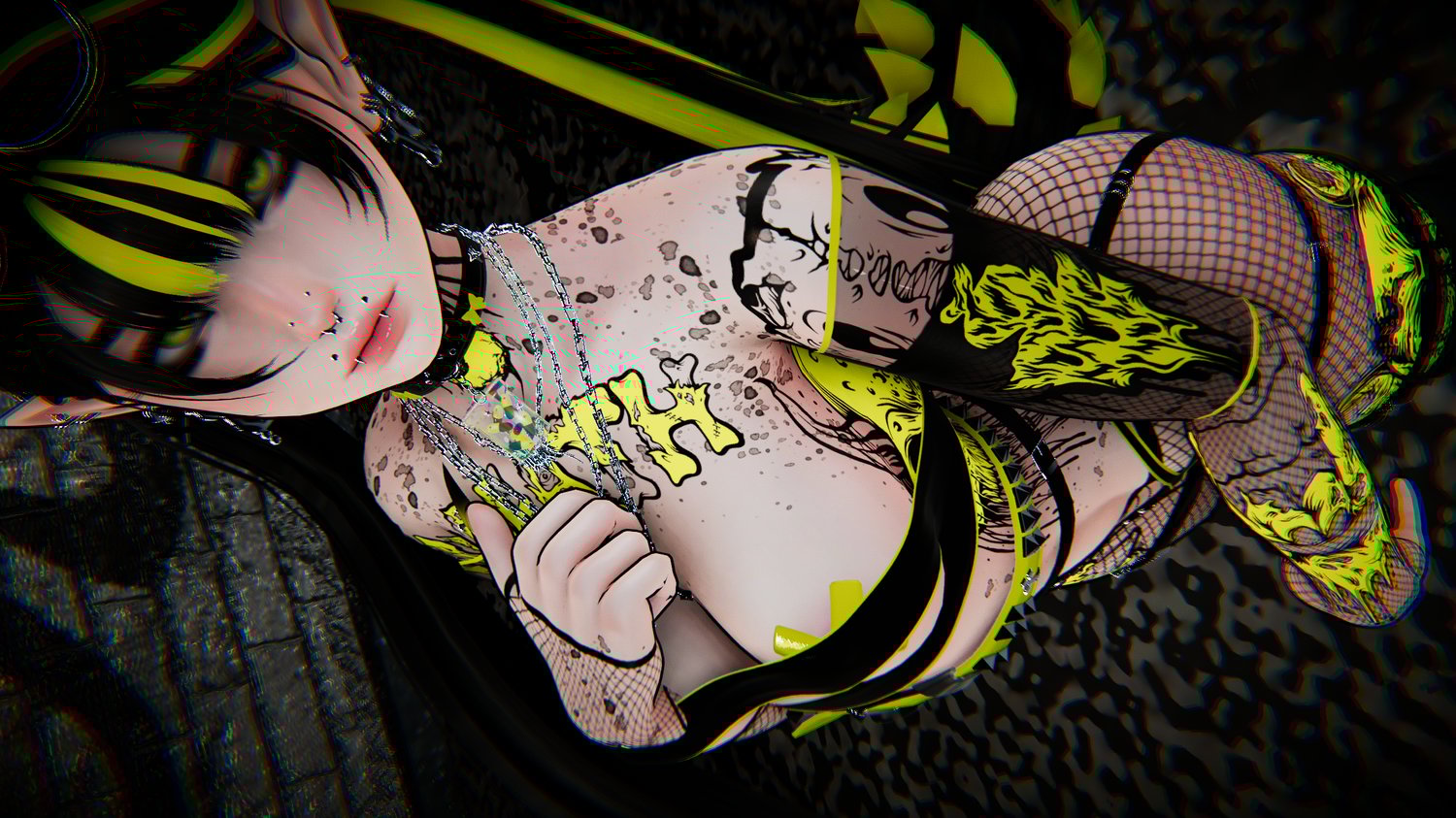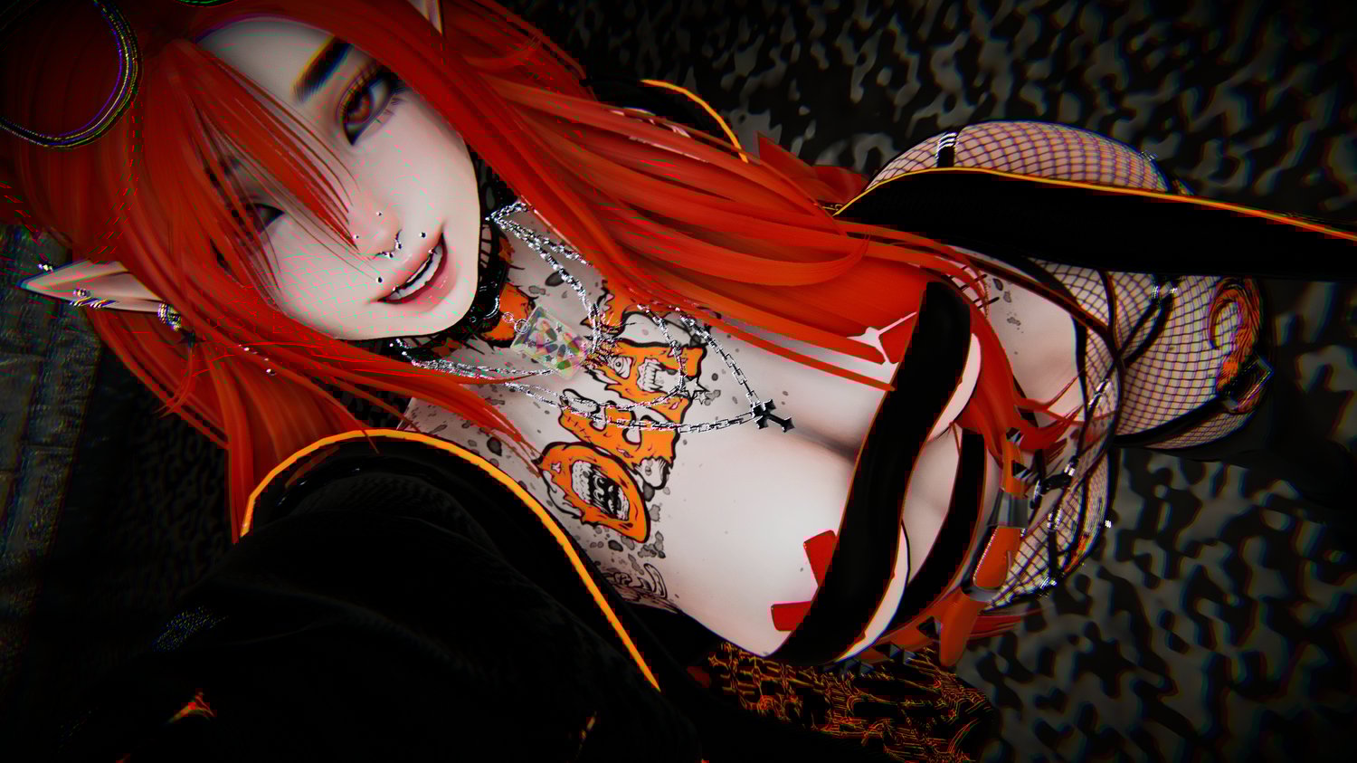 Glasses - Glasses Up - Face Piercings - Gas Mask - Choker - Belt - Hip Harness- Top Earrings - Lower Earrings - Necklaces - Leg Fishnets - Fishnet Bands